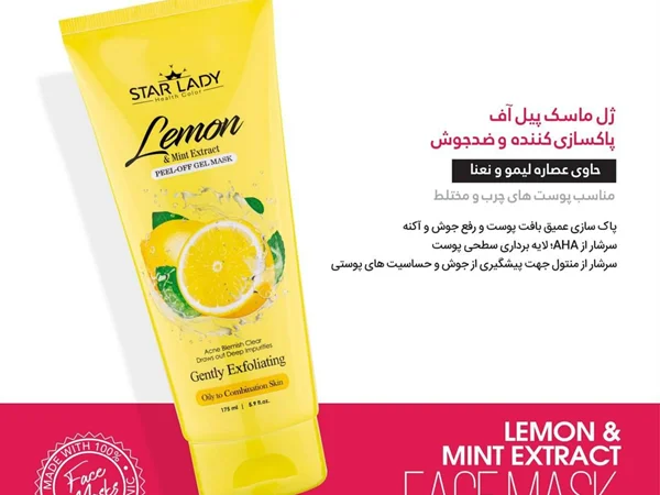 ماسک لایه بردار استاری لیدی حاوی عصاره لیمو و نعناع مناسب پوست های چرب و مختلط