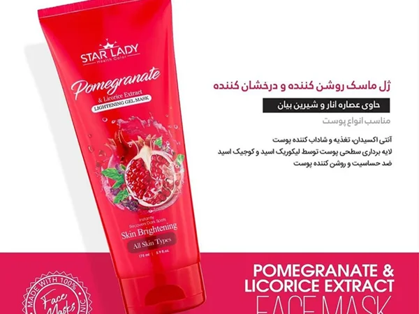 ژل ماسک صورت استارلیدی مدل روشن کننده انار و شیرین بیان حجم 175 میلی لیتر