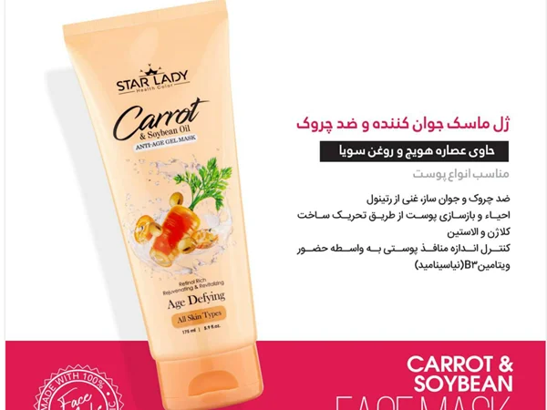 ژل ماسک صورت جوان کننده و ضد چروک استارلیدی عصاره هویج و روغن سویا 175 میلی لیتر Start lady Power Mask 175 ml