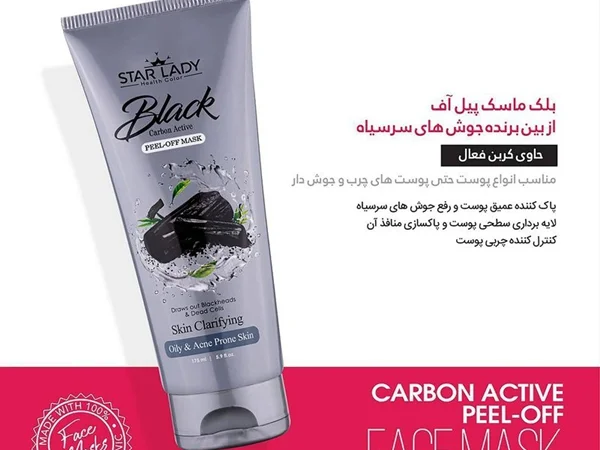 ماسک پیل آف ضد جوش سرسیاه زغال فعال استار لیدی حجم 175 میلی لیتر