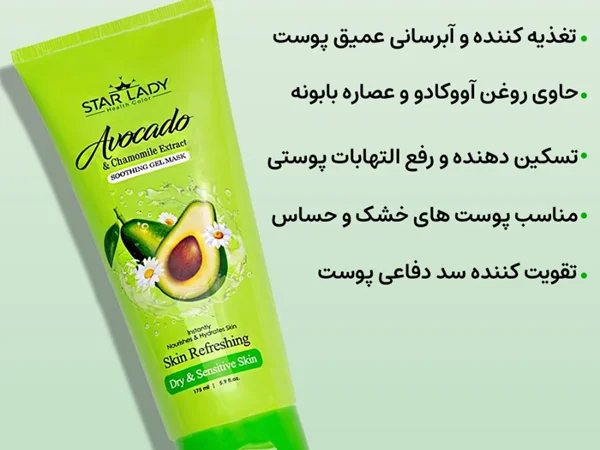 ژل ماسک صورت حاوی روغن آووکادو و عصاره بابونه (175 میلیلیتر)