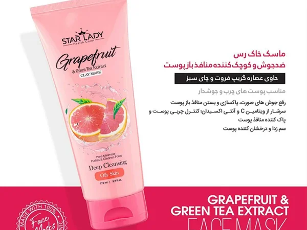 ماسک صورت استارلیدی مدل گریپ فروت و خاک رس چای سبز حجم 175 میلی لیتر